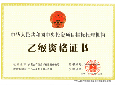 • 中華人民共和國政府采購代理機構乙級資格證書